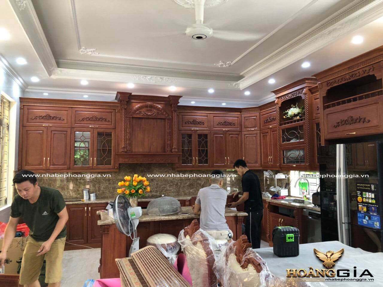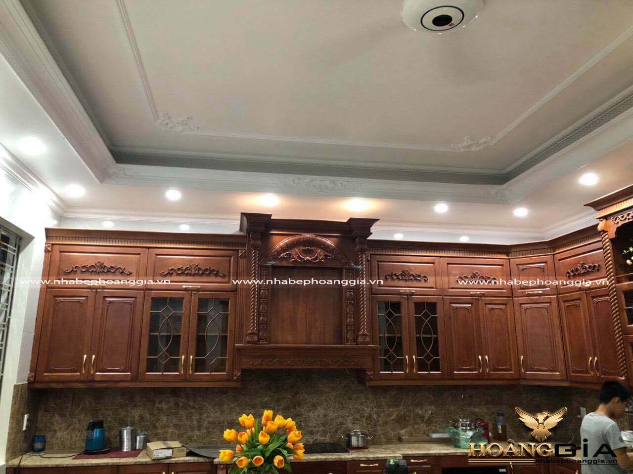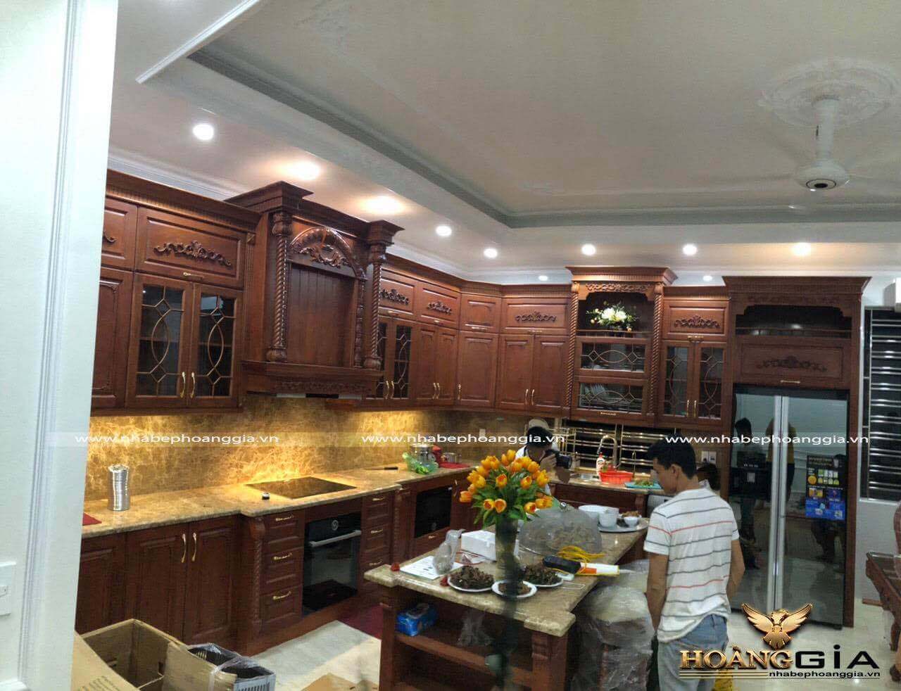 Và để đáp ứng được mong muốn của chị, Nhà Bếp Hoàng Gia đã không ngừng cố gắng mang đến cho chị một mẫu tủ bếp tân cổ điển gỗ gõ đỏ tự nhiên phù hợp với gian bếp của chị nhất. Song song với đó thì đội ngũ kỹ thuật của chúng tôi cũng không ngừng cố gắng để hoàn thiện mẫu tủ bếp này cho ngôi nhà của chị trong thời gian ngắn nhất. Và dưới đây chính là hình ảnh thực tế thi công tủ bếp nhà chị Hằng để mọi người cùng ngắm nhìn và so sánh với bản vẽ thiết kế nhé!
