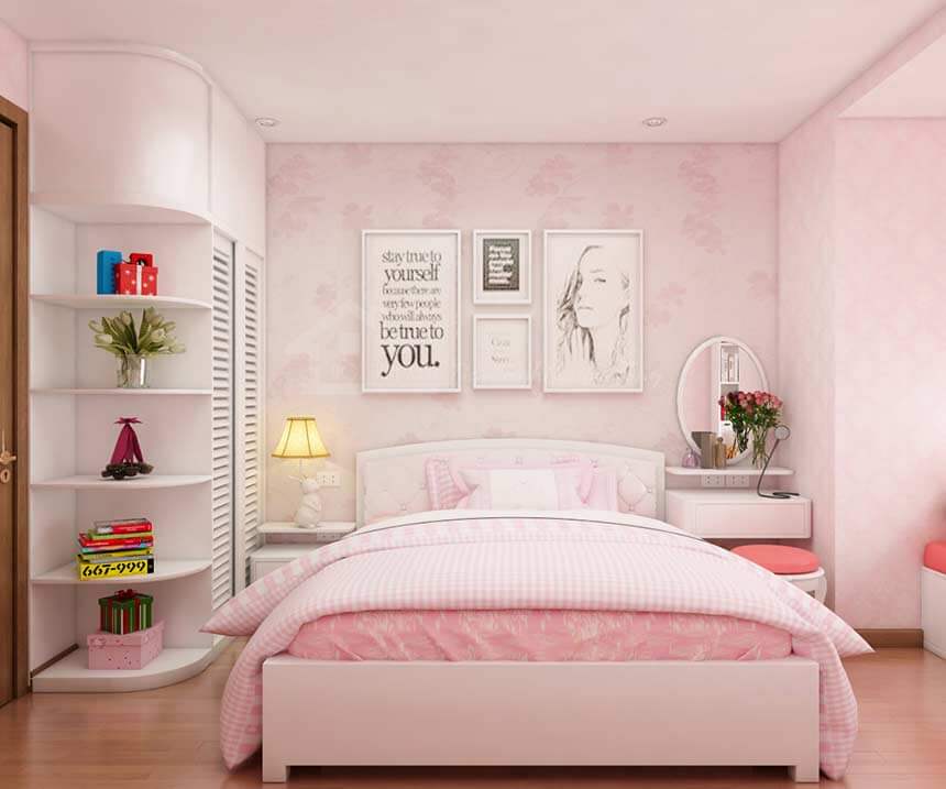 Mang nét nữ tính ngọt ngào vốn có của màu hồng, vì vậy phòng ngủ màu hồng pastel này rất phù hợp với những chủ nhân nữ trẻ trung yêu thích sự lãng mạn.