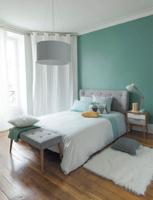 Tường phòng ngủ màu xanh ngọc cũng đang được nhiều gia chủ yêu thích